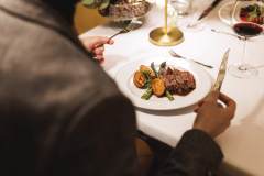 Main course: Roast beef steak with pepper sauce, grilled asparagus and potatoes
